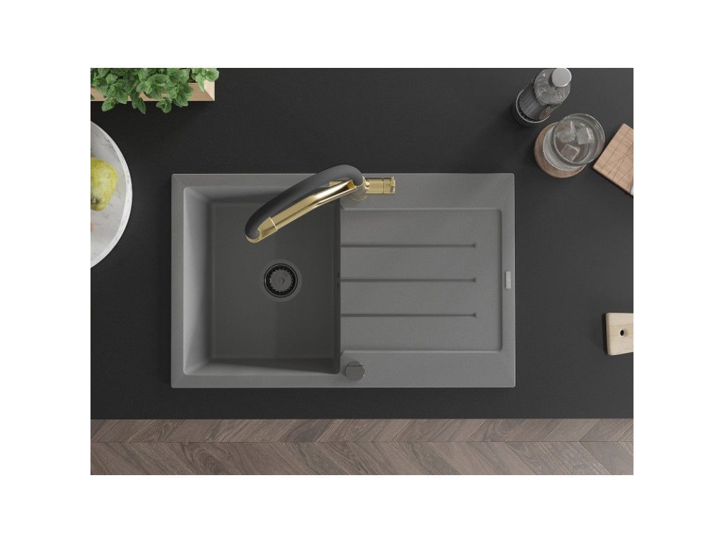 Granitový drez Mexen Bruno s 1 misou, odkapávačom a kuchynskou batériou Duo, sivý - 6513-71-671701-57-B