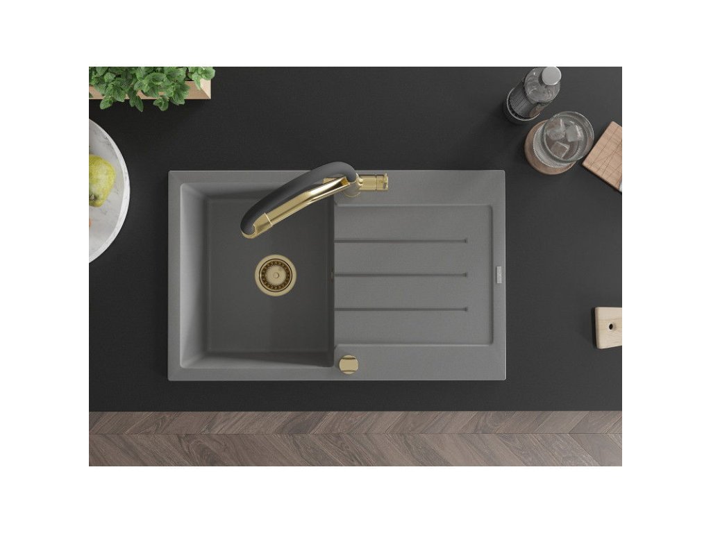 Granitový drez Mexen Bruno s 1 misou, odkapávačom a kuchynskou batériou Duo, sivý - 6513-71-671701-57-G