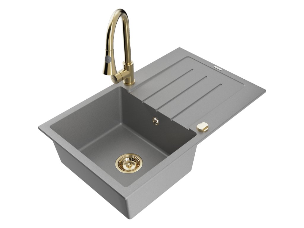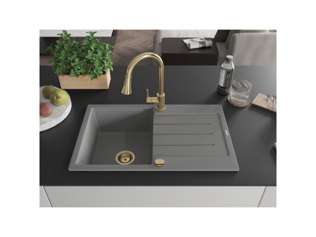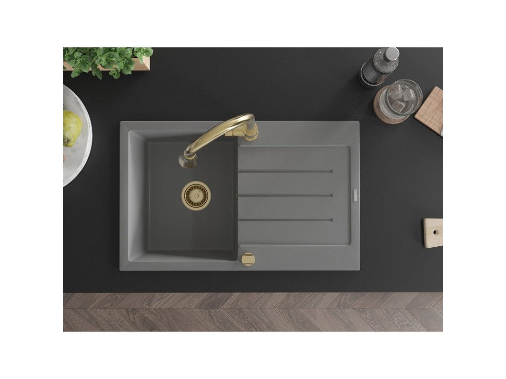 Granitový drez Mexen Bruno s 1 misou, odkapávačom a kuchynskou batériou Elia, sivý - 6513-71-670101-50