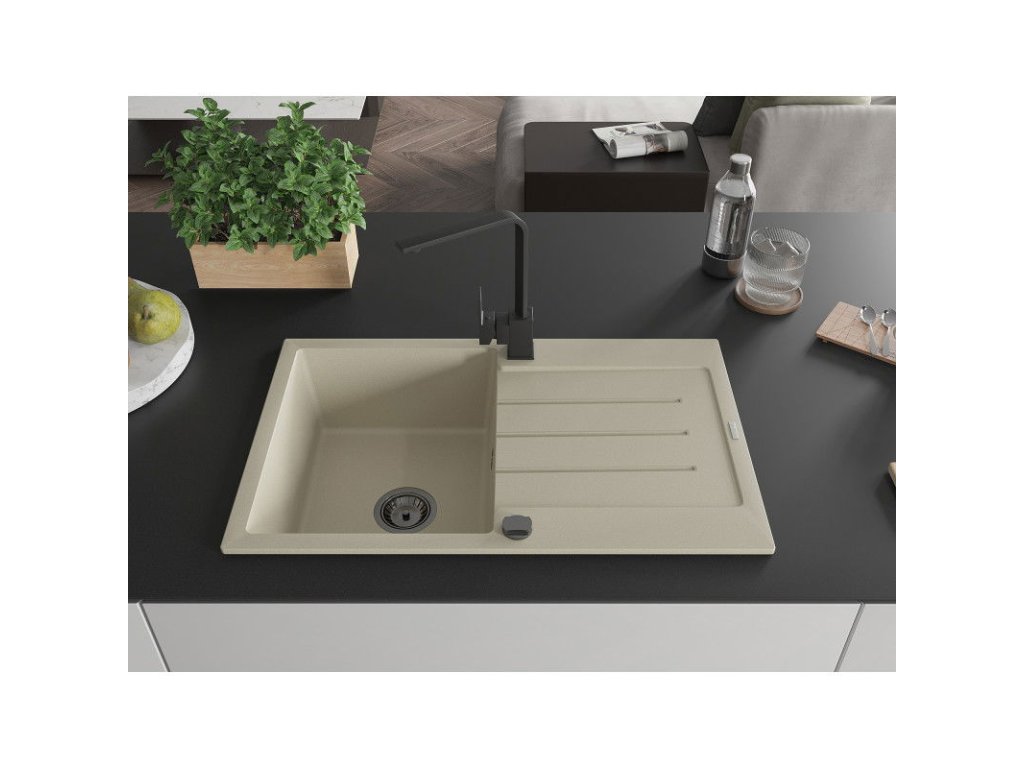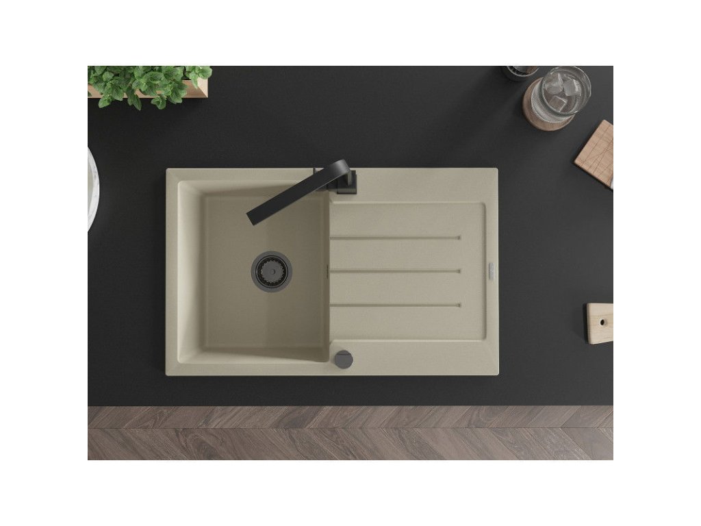 Granitový drez Mexen Bruno s 1 misou, odkapávačom a kuchynskou batériou Rita, béžový - 6513-69-670300-70