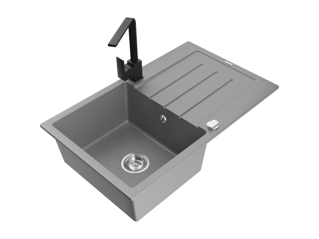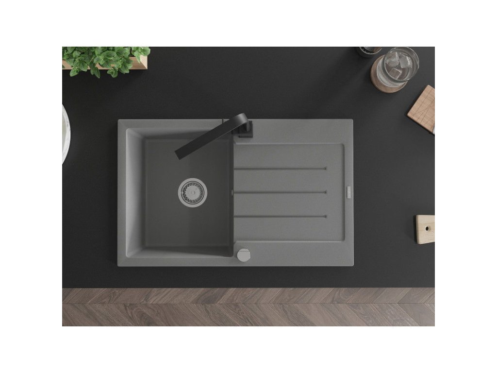 Granitový drez Mexen Bruno s 1 misou, odkapávačom a kuchynskou batériou Rita, sivý - 6513-71-670300-70