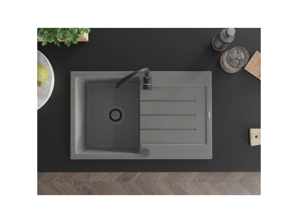 Granitový drez Mexen Bruno s 1 misou, odkapávačom a kuchynskou batériou Telma, sivý - 6513-71-670200-70-B