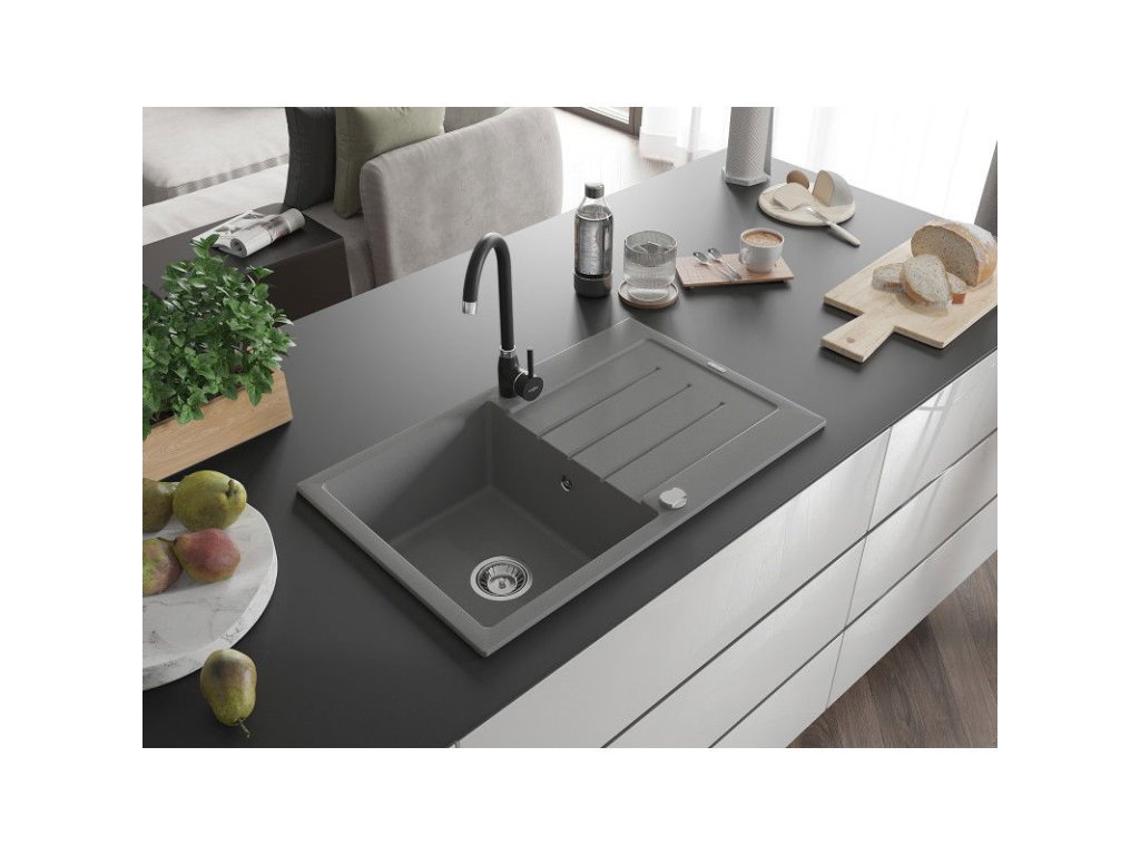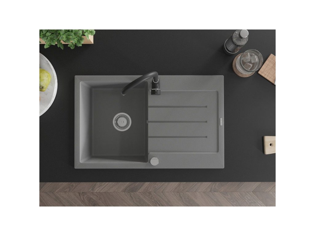 Granitový drez Mexen Bruno s 1 misou, odkapávačom a kuchynskou batériou Telma, sivý - 6513-71-670200-70