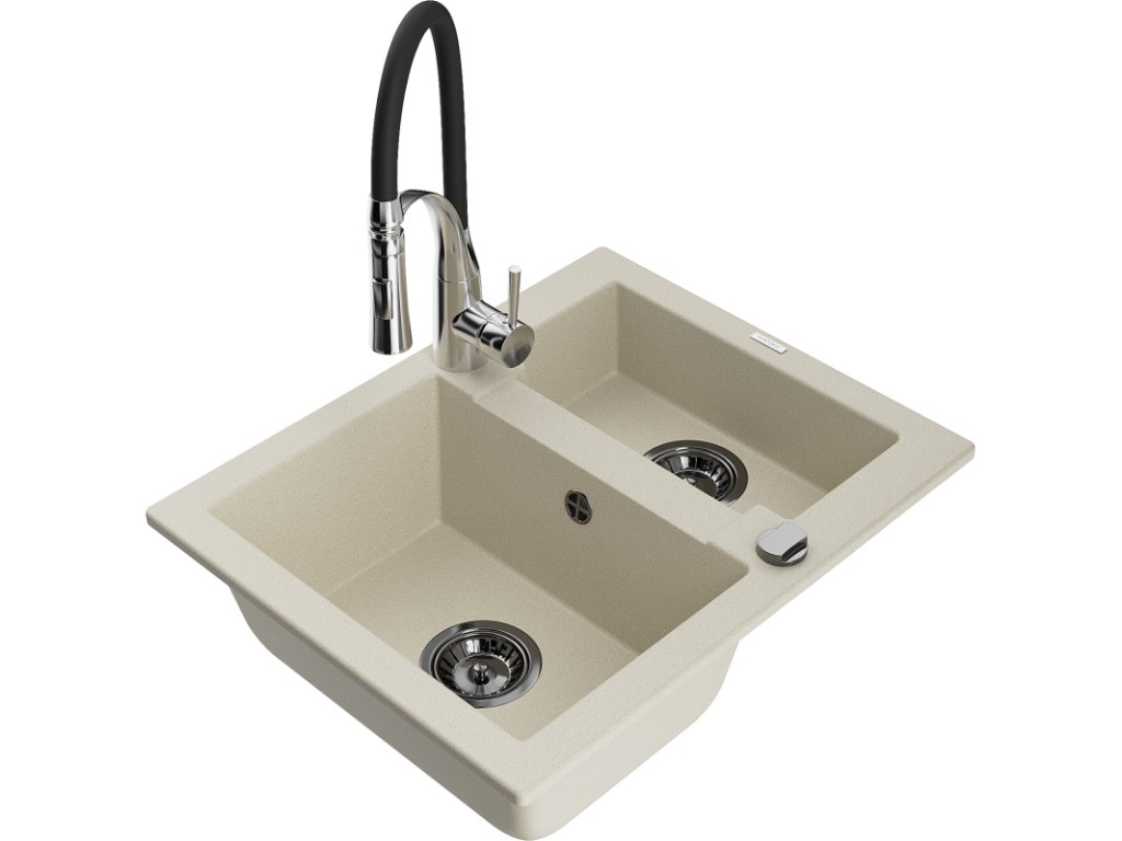 Granitový drez Mexen Carlos s 1,5 miskou a kuchynskou batériou Aster, béžový - 6518-69-73450-07-B