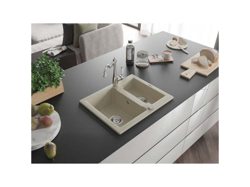 Granitový drez Mexen Carlos s 1,5 miskou a kuchynskou batériou Carla, béžový - 6518-69-670700-00