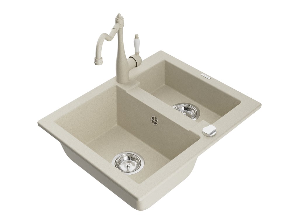 Granitový drez Mexen Carlos s 1,5 miskou a kuchynskou batériou Carla, béžový - 6518-69-670700-69