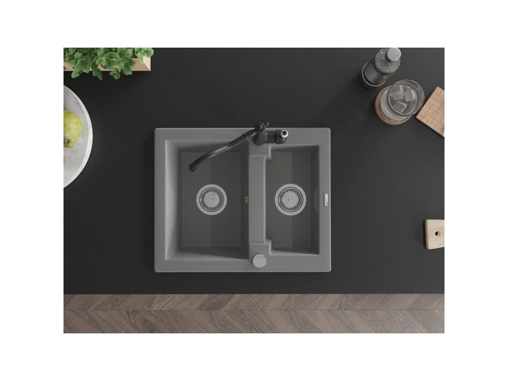 Granitový drez Mexen Carlos s 1,5 miskou a kuchynskou batériou Carla, sivý - 6518-71-670700-70