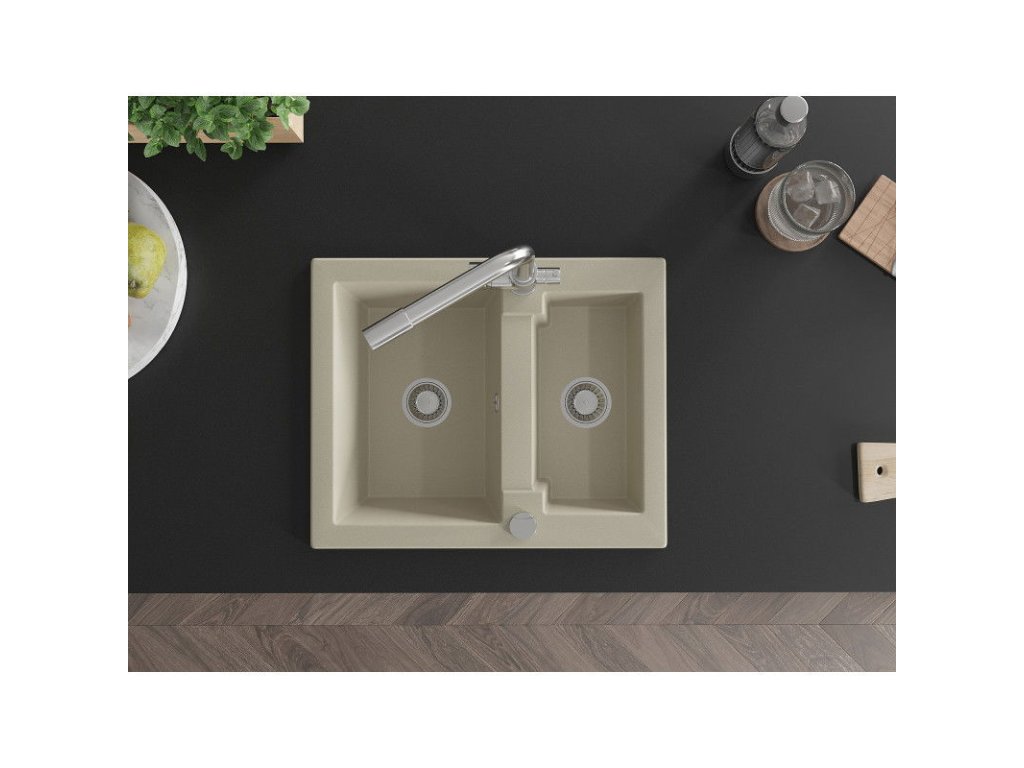 Granitový drez Mexen Carlos s 1,5 miskou a kuchynskou batériou Duero, béžový - 6518-69-671600-00