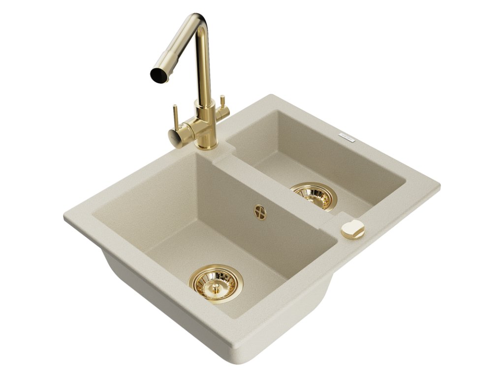 Granitový drez Mexen Carlos s 1,5 miskou a kuchynskou batériou Duero, béžový - 6518-69-671600-50