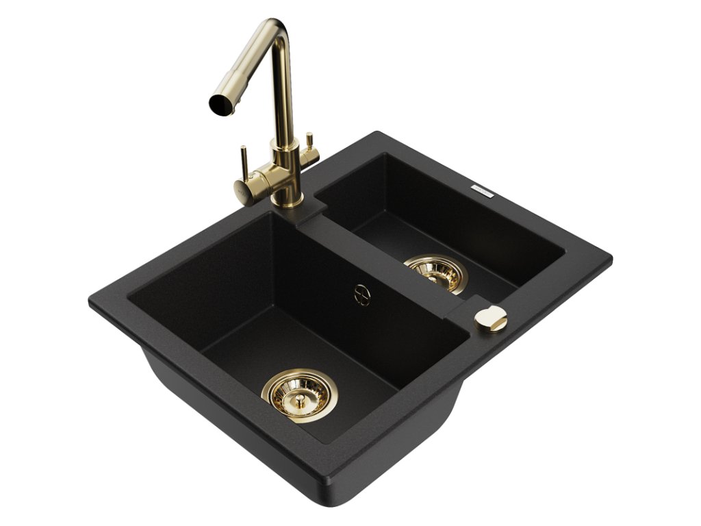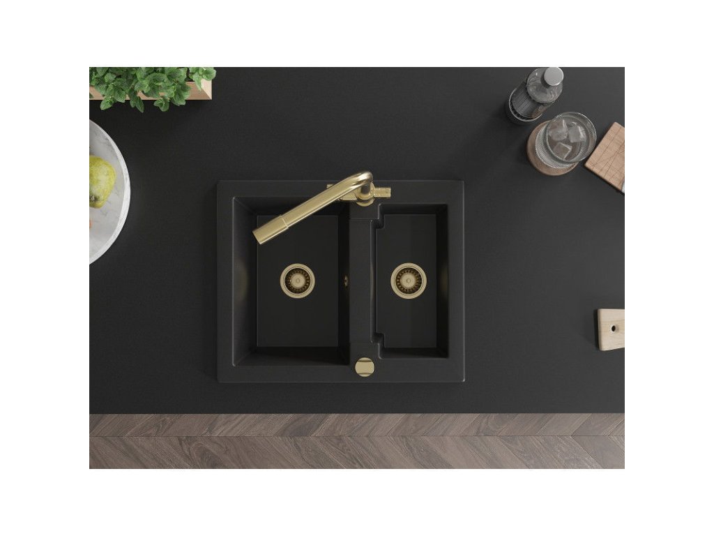 Granitový drez Mexen Carlos s 1,5 miskou a kuchynskou batériou Duero, čierny - 6518-77-671600-50