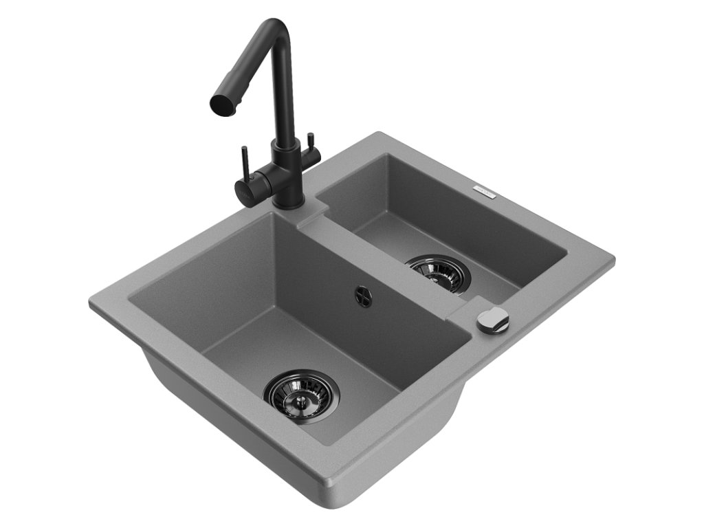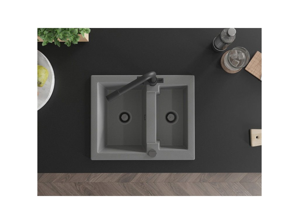Granitový drez Mexen Carlos s 1,5 miskou a kuchynskou batériou Duero, sivý - 6518-71-671600-70-B