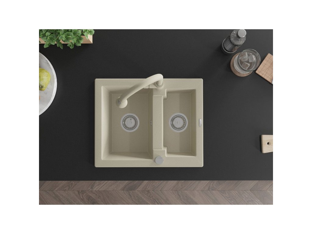 Granitový drez Mexen Carlos s 1,5 miskou a kuchynskou batériou Elia, béžový - 6518-69-670101-69