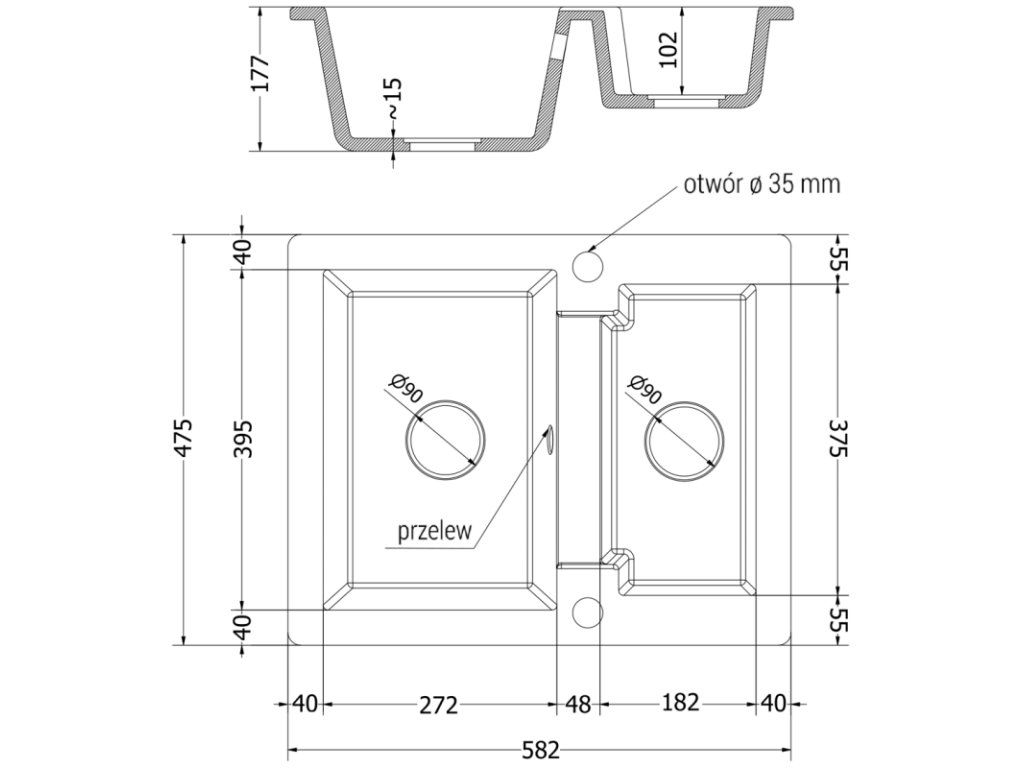 Hĺbka komory: 162 mm (väčšia), 102 mm (menšia)