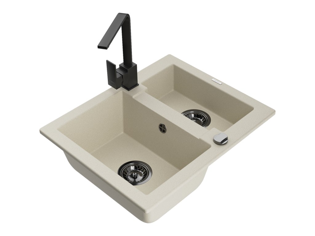 Granitový drez Mexen Carlos s 1,5 miskou a kuchynskou batériou Rita, béžový - 6518-69-670300-70