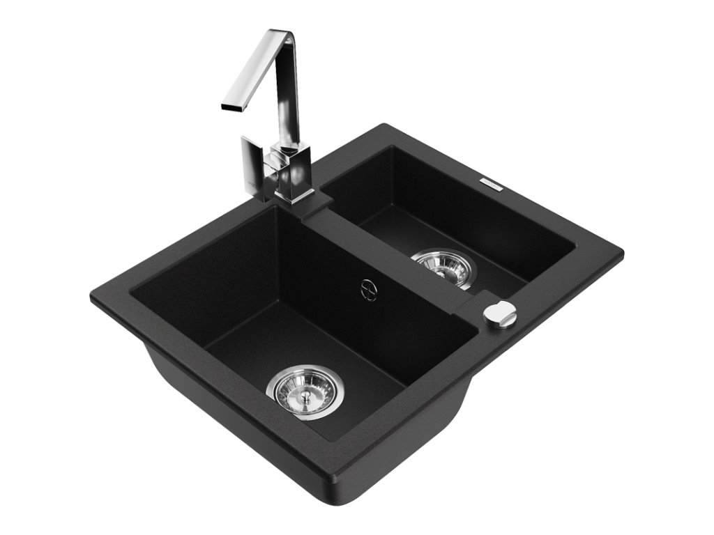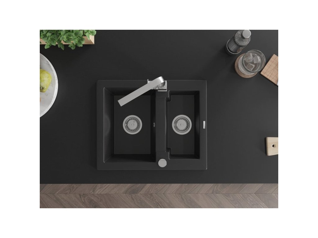 Granitový drez Mexen Carlos s 1,5 miskou a kuchynskou batériou Rita, čierny - 6518-77-670300-00