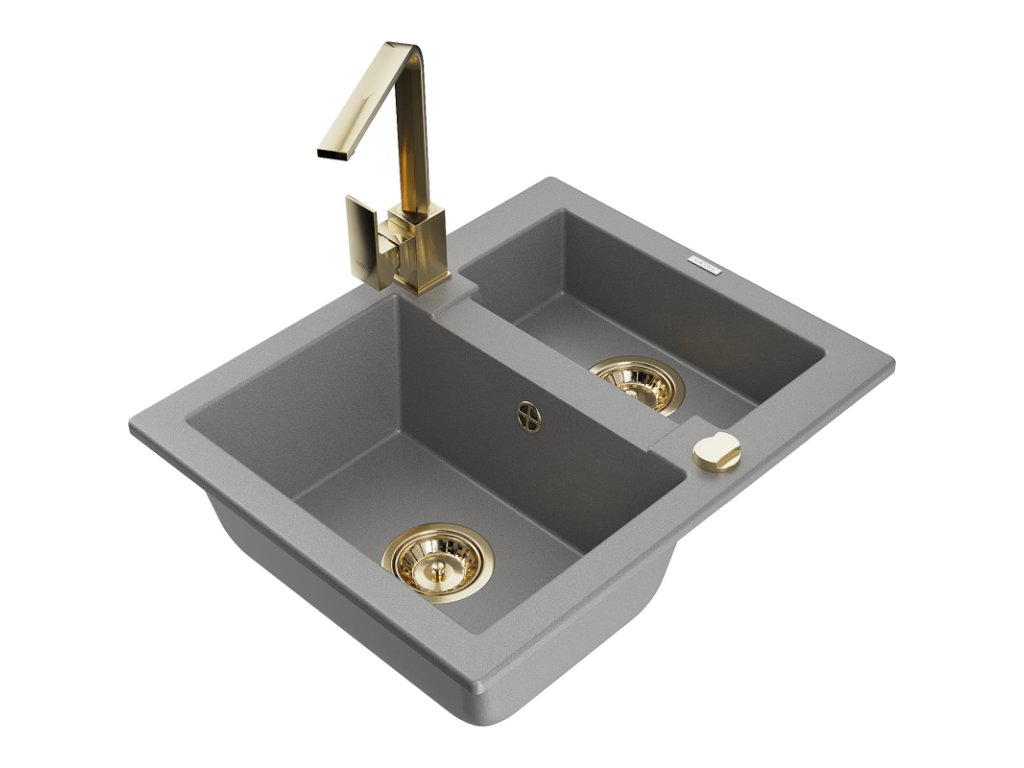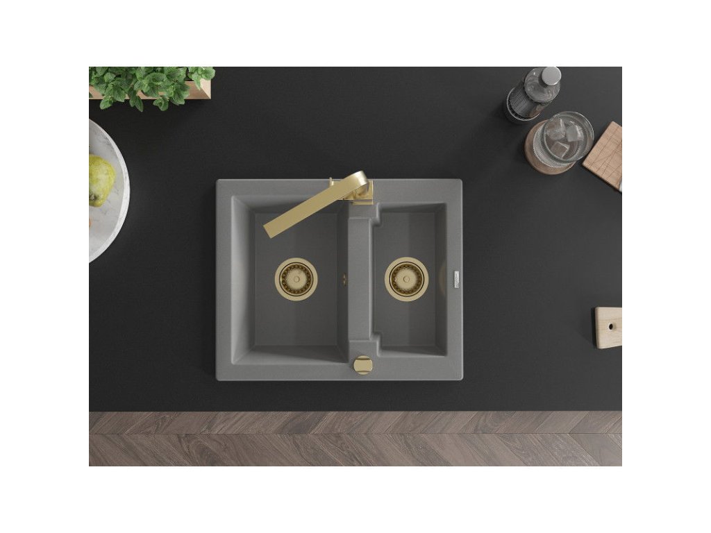 Granitový drez Mexen Carlos s 1,5 miskou a kuchynskou batériou Rita, sivý - 6518-71-670300-50