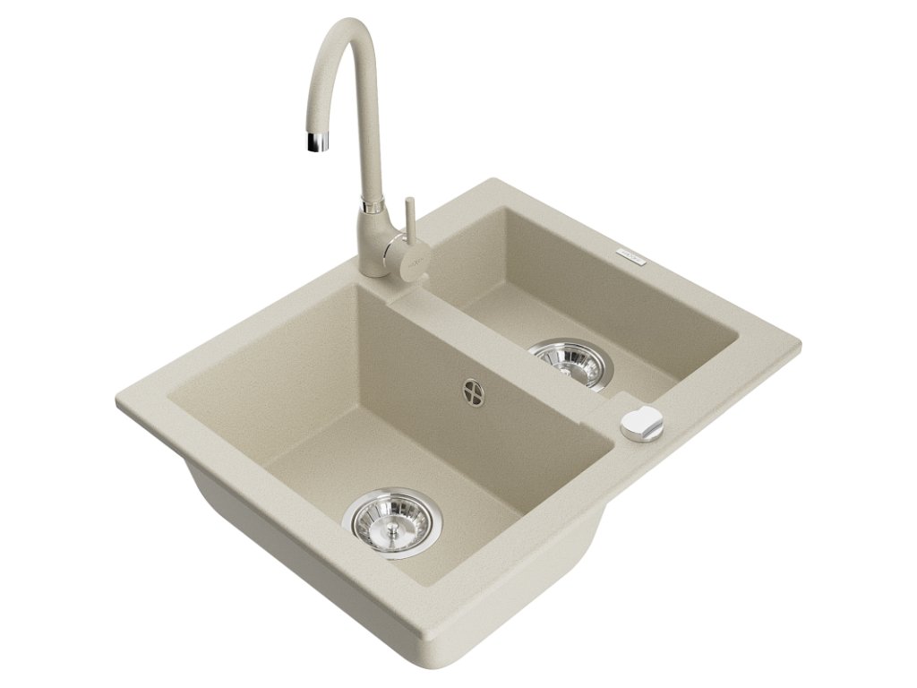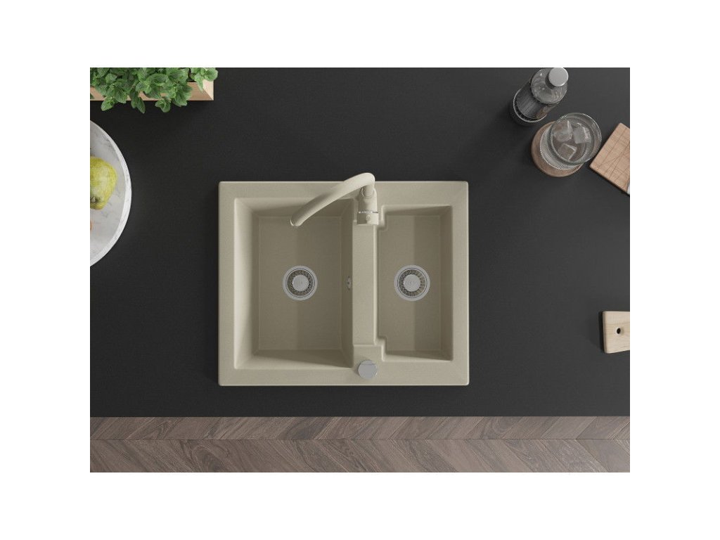 Granitový drez Mexen Carlos s 1,5 miskou a kuchynskou batériou Telma, béžový - 6518-69-670200-69
