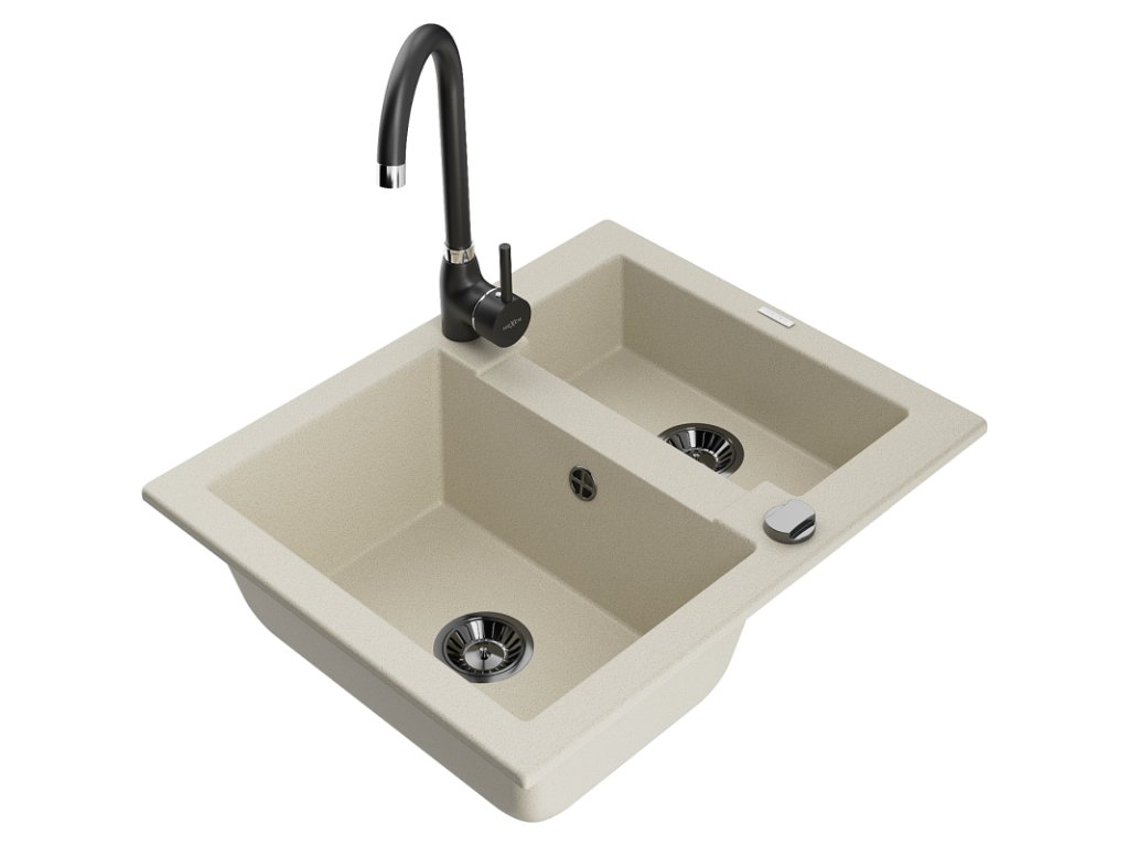 Granitový drez Mexen Carlos s 1,5 miskou a kuchynskou batériou Telma, béžový - 6518-69-670200-70