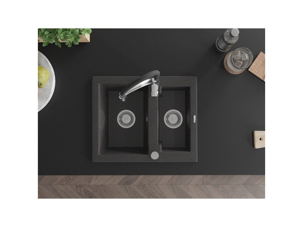 Granitový drez Mexen Carlos s 1,5 misky a kuchynskou batériou Aster, čierna škvrnitá - 6518-76-73450-07