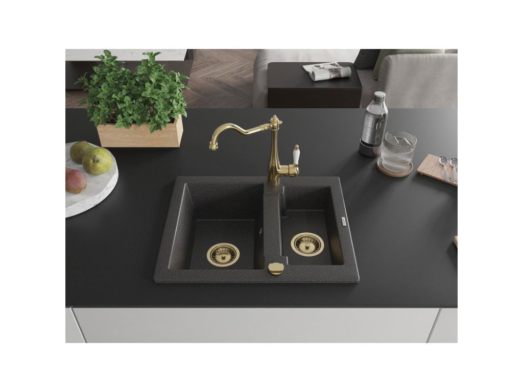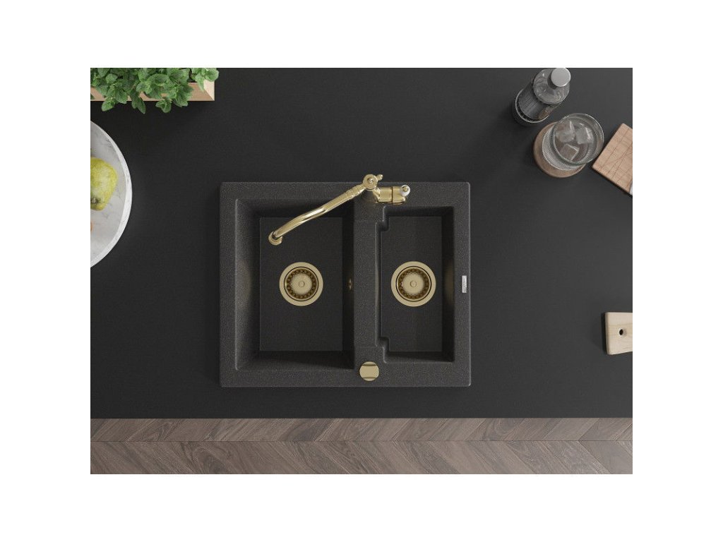 Granitový drez Mexen Carlos s 1,5 misky a kuchynskou batériou Carla, čierna škvrnitá - 6518-76-670700-50