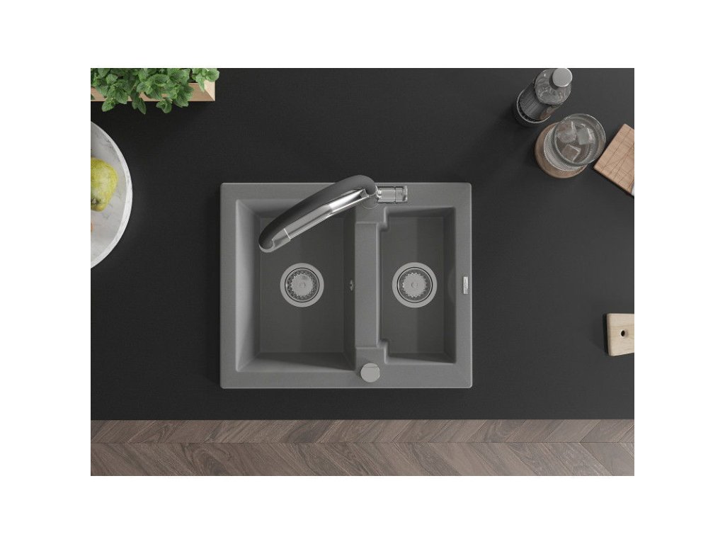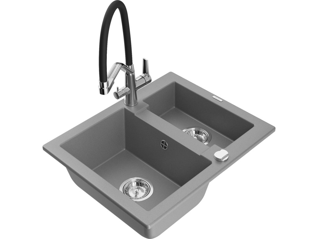 Granitový drez Mexen Carlos s 1,5 misky a kuchynskou batériou Duo, sivý - 6518-71-671701-07