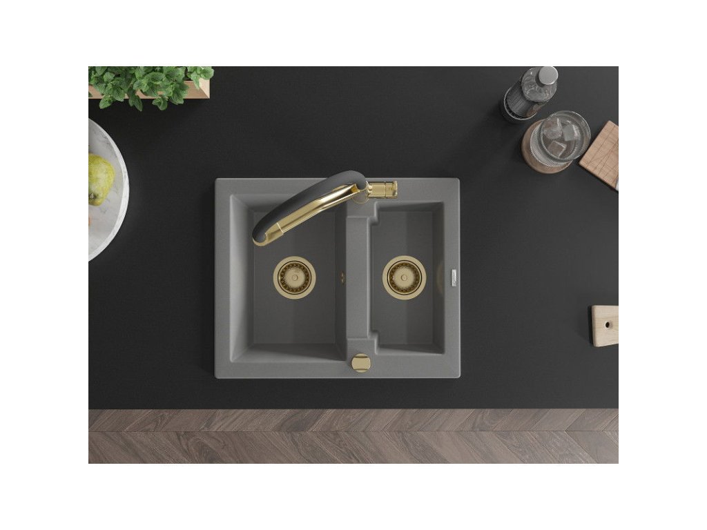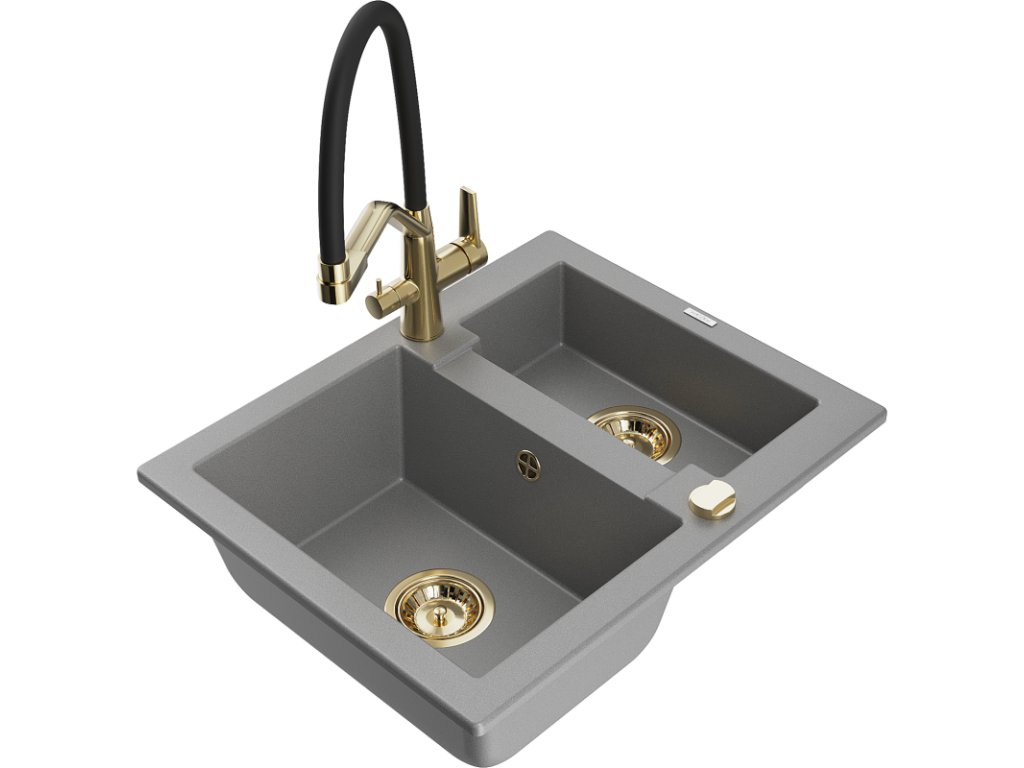 Granitový drez Mexen Carlos s 1,5 misky a kuchynskou batériou Duo, sivý - 6518-71-671701-57-G