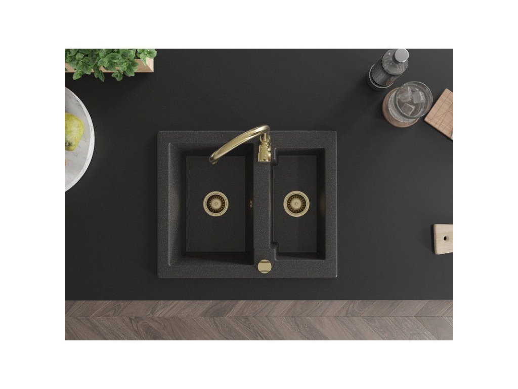 Granitový drez Mexen Carlos s 1,5 misky a kuchynskou batériou Telma, čierna škvrnitá - 6518-76-670200-50