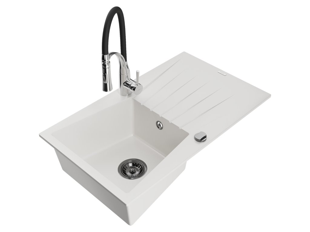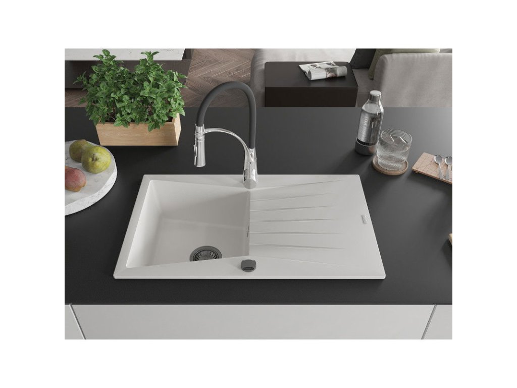 Granitový drez Mexen Cesar s 1 misou, odkapávačom a batériou Aster, biely - 6514-20-73450-07-B