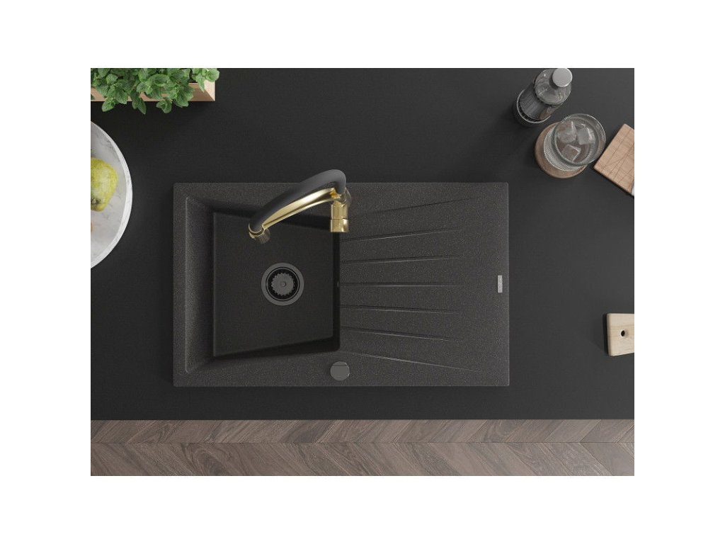 Granitový drez Mexen Cesar s 1 misou, odkapávačom a batériou Aster, čierna škvrnitá - 6514-76-73450-57-B