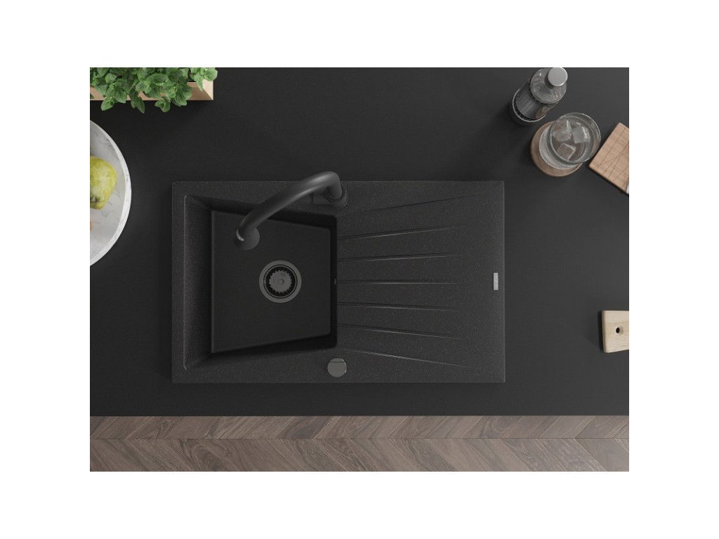 Granitový drez Mexen Cesar s 1 misou, odkapávačom a batériou Elia, čierna/strieborná metalíza - 6514-73-670101-70-B