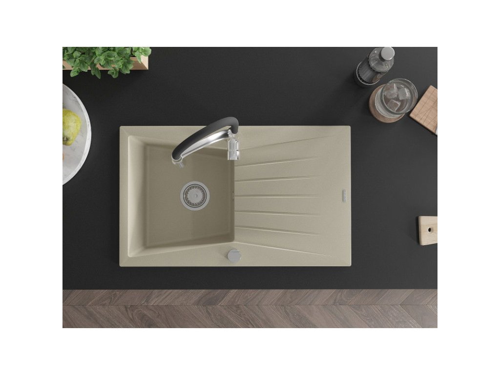 Granitový drez Mexen Cesar s 1 misou, odkapávačom a kuchynskou batériou Aster, béžový - 6514-69-73450-07