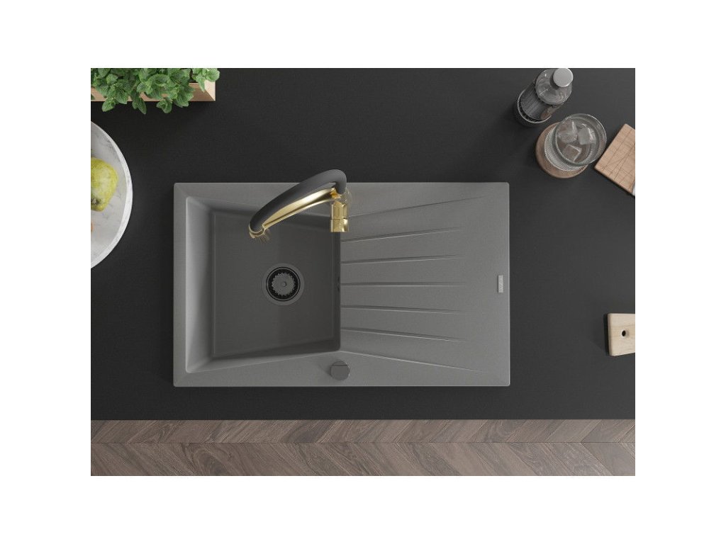 Granitový drez Mexen Cesar s 1 misou, odkapávačom a kuchynskou batériou Aster, sivý - 6514-71-73450-57-B