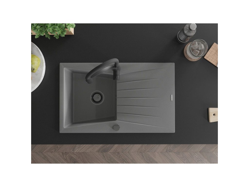 Granitový drez Mexen Cesar s 1 misou, odkapávačom a kuchynskou batériou Aster, sivý - 6514-71-73450-70-B