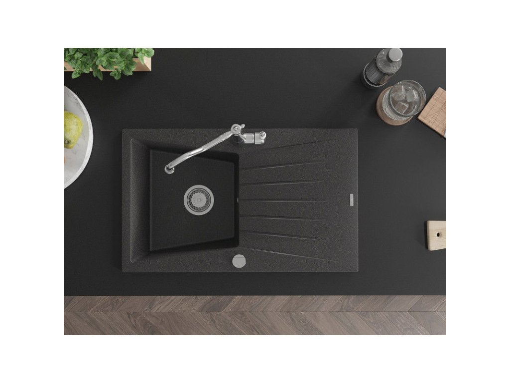Granitový drez Mexen Cesar s 1 misou, odkapávačom a kuchynskou batériou Carla, čierna škvrnitá - 6514-76-670700-00
