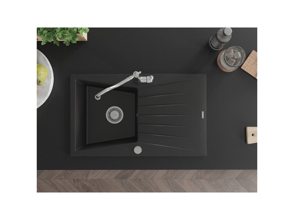Granitový drez Mexen Cesar s 1 misou, odkapávačom a kuchynskou batériou Carla, čierny - 6514-77-670700-00