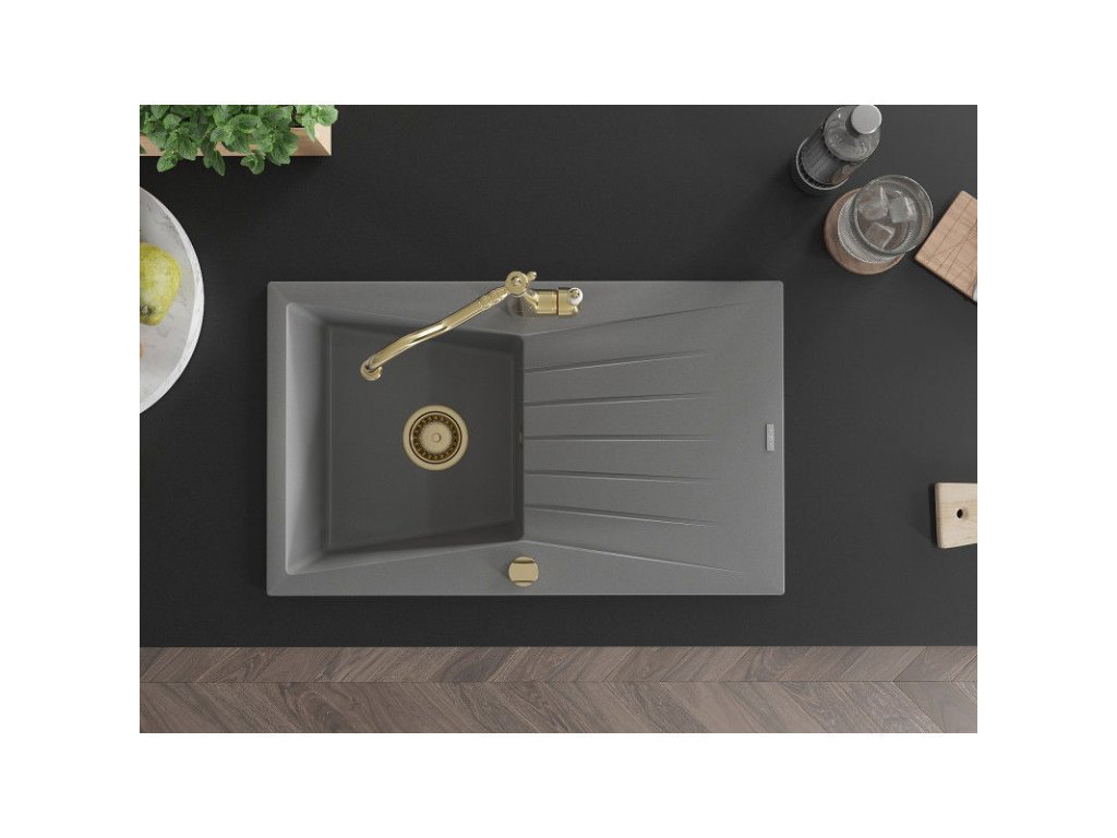 Granitový drez Mexen Cesar s 1 misou, odkapávačom a kuchynskou batériou Carla, sivý - 6514-71-670700-50