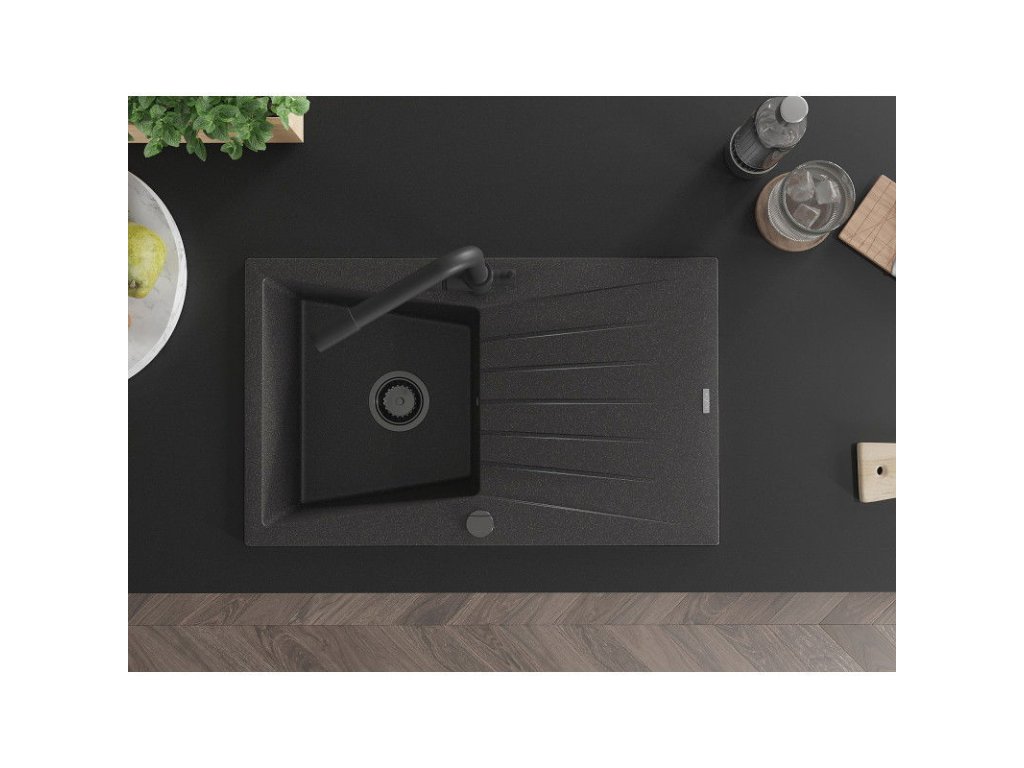 Granitový drez Mexen Cesar s 1 misou, odkapávačom a kuchynskou batériou Duero, čierna škvrnitá - 6514-76-671600-70-B