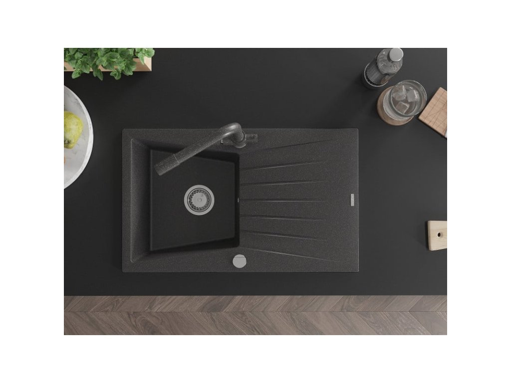 Granitový drez Mexen Cesar s 1 misou, odkapávačom a kuchynskou batériou Duero, čierna škvrnitá - 6514-76-671600-76
