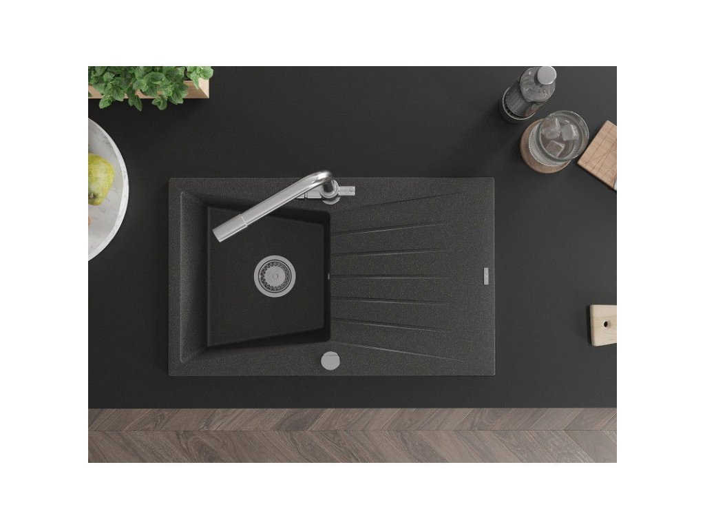 Granitový drez Mexen Cesar s 1 misou, odkapávačom a kuchynskou batériou Duero, čierny bodkovaný - 6514-76-671600-00
