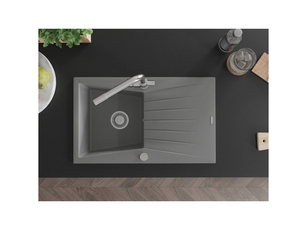 Granitový drez Mexen Cesar s 1 misou, odkapávačom a kuchynskou batériou Duero, sivý - 6514-71-671600-00