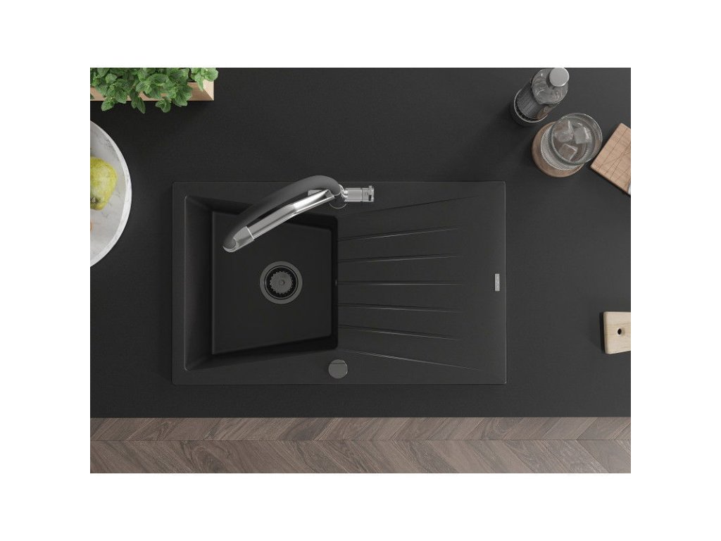 Granitový drez Mexen Cesar s 1 misou, odkapávačom a kuchynskou batériou Duo, čierny - 6514-77-671701-07-B