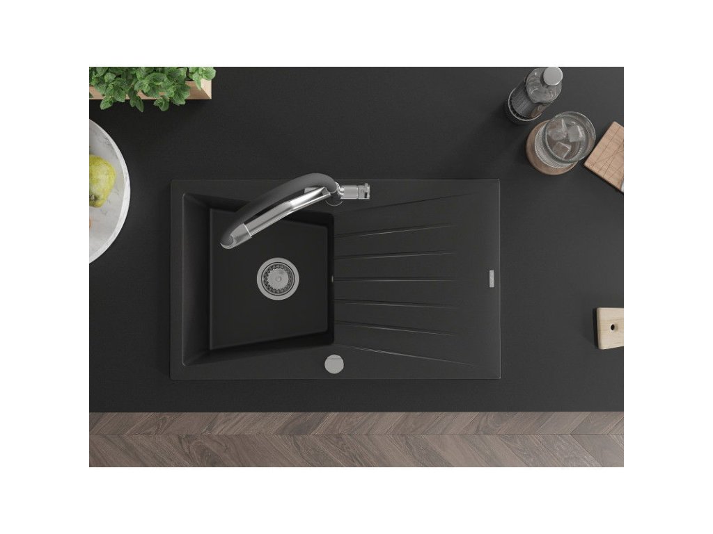 Granitový drez Mexen Cesar s 1 misou, odkapávačom a kuchynskou batériou Duo, čierny - 6514-77-671701-07
