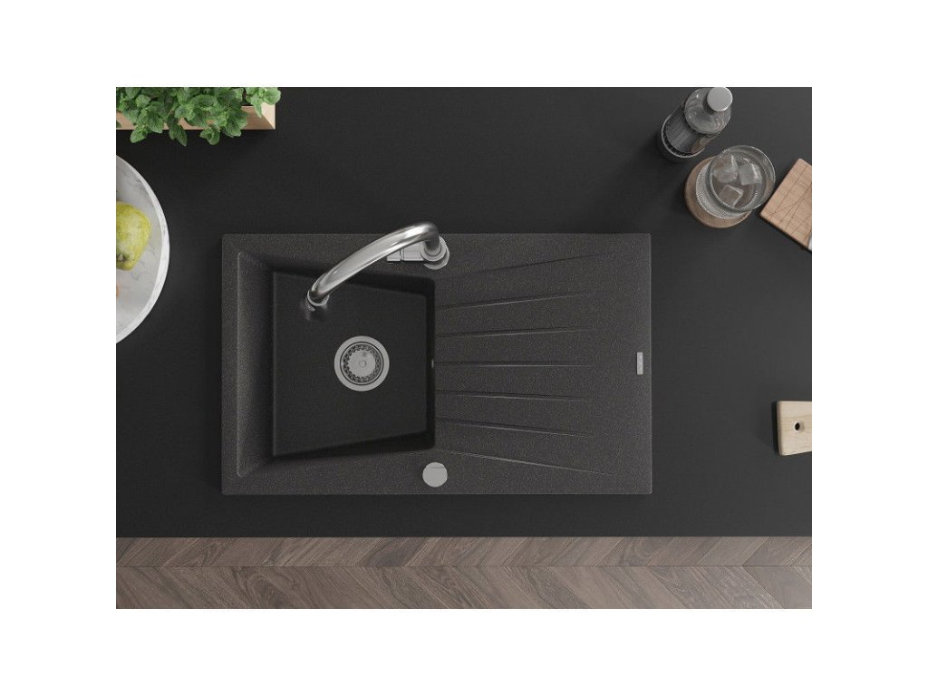 Granitový drez Mexen Cesar s 1 misou, odkapávačom a kuchynskou batériou Elia, čierny bodkovaný - 6514-76-670101-00