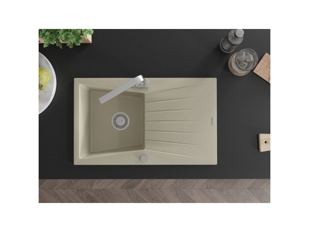 Granitový drez Mexen Cesar s 1 misou, odkapávačom a kuchynskou batériou Rita, béžový - 6514-69-670300-00