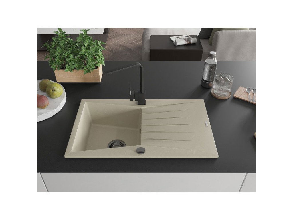 Granitový drez Mexen Cesar s 1 misou, odkapávačom a kuchynskou batériou Rita, béžový - 6514-69-670300-70