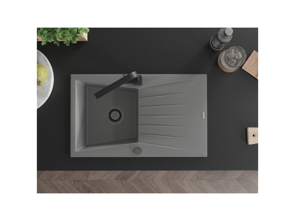 Granitový drez Mexen Cesar s 1 misou, odkapávačom a kuchynskou batériou Rita, sivý - 6514-71-670300-70-B