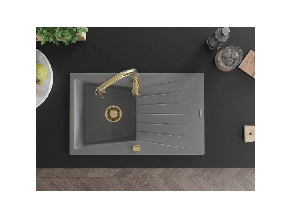 Granitový drez Mexen Cesar s 1 misou, odkapávačom a kuchynskou batériou Savita, sivý - 6514-71-672601-50