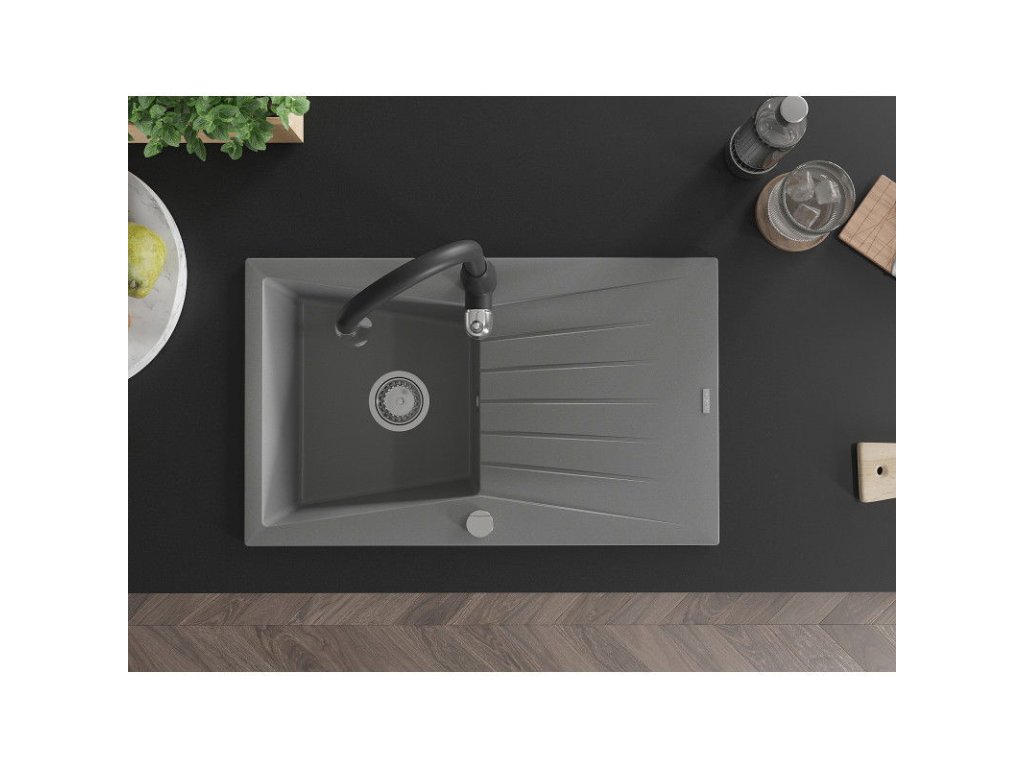 Granitový drez Mexen Cesar s 1 misou, odkapávačom a kuchynskou batériou Savita, sivý - 6514-71-672601-70