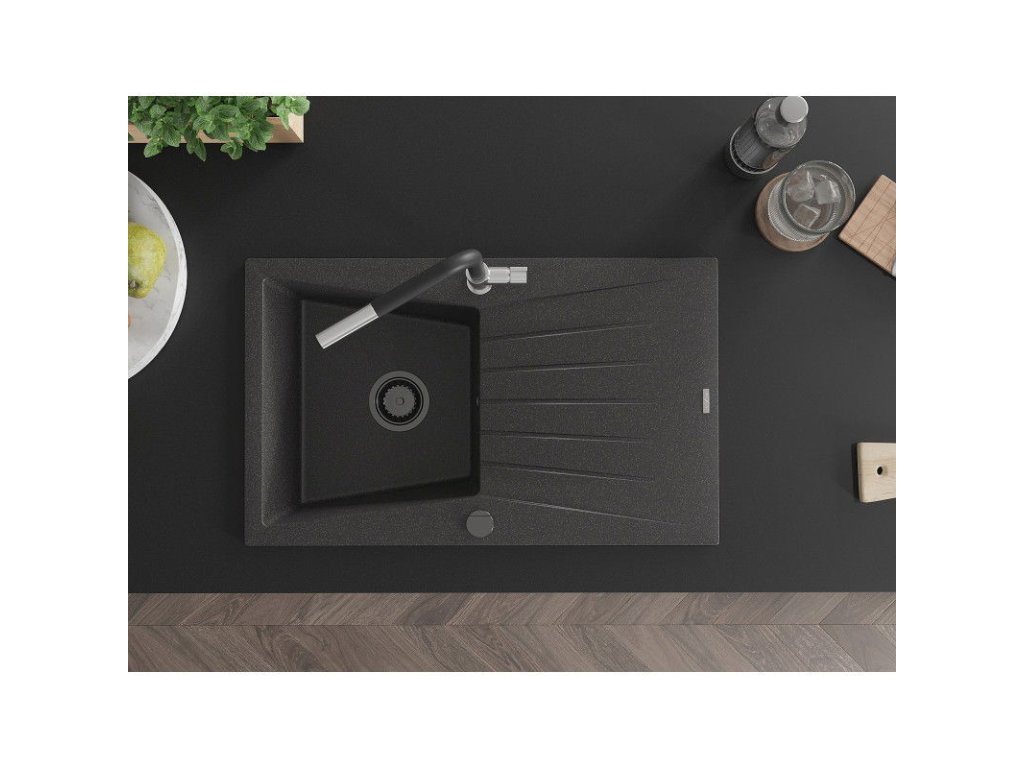 Granitový drez Mexen Cesar s 1 misou, odkvapkávačom a batériou Flora, čierna škvrnitá - 6514-76-670401-07-B