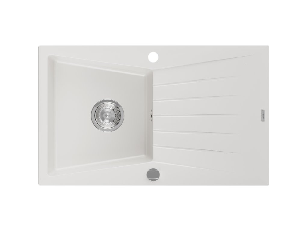 Granitový drez Mexen Cesar s 1 misou a odkapávačom 775 x 470 mm, biely, chrómový sifón - 6514771010-20
